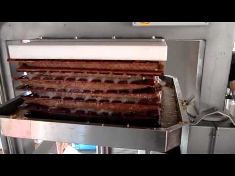 Our machine works best for juicing apples and other hard fruits. Our hydraulic press pushes the apple juice out of the fibrous fruits, through layered mats and special latticed wood slats and into a holding tank before pasteurization.